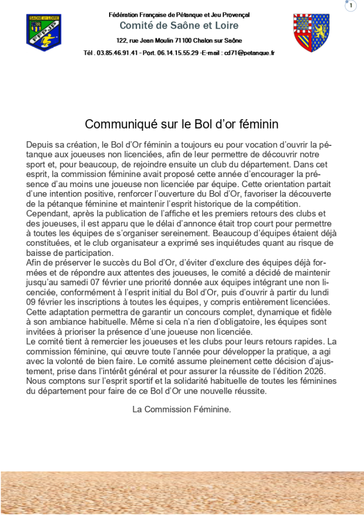 Voici l’affiche du repas organisé à l’occasion du Bol d’Or féminin de Paray‑le‑Monial.Vous y trouverez l’ensemble des informations utiles ainsi que les modalités d’inscription.