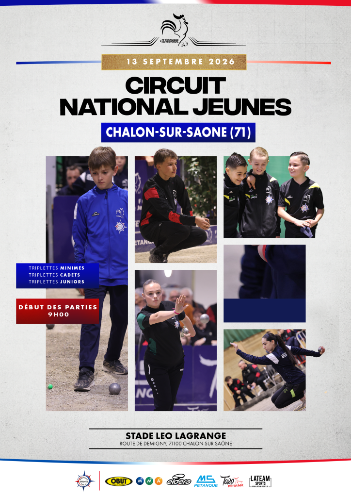 Affiche et Fiche inscriptions pour le national jeunes Chalon sur Saône Lots en valeur de 850 € par catégories: Inscriptions gratuite par courrier