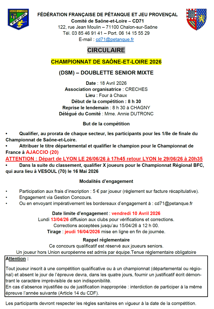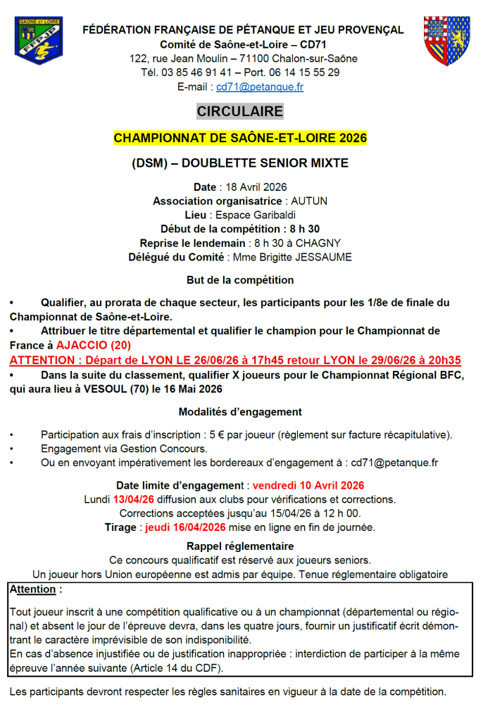 Bienvenue sur le site officiel du Comité de Saône et Loire