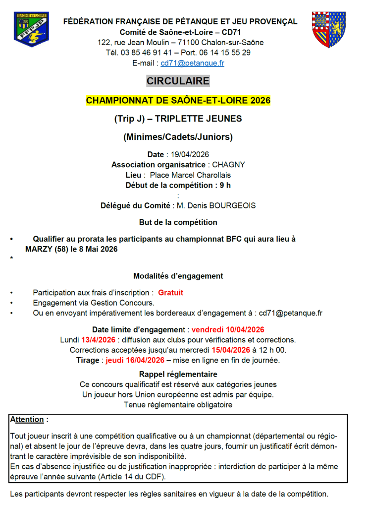 Affiche et Fiche inscriptions pour le national jeunes Chalon sur Saône